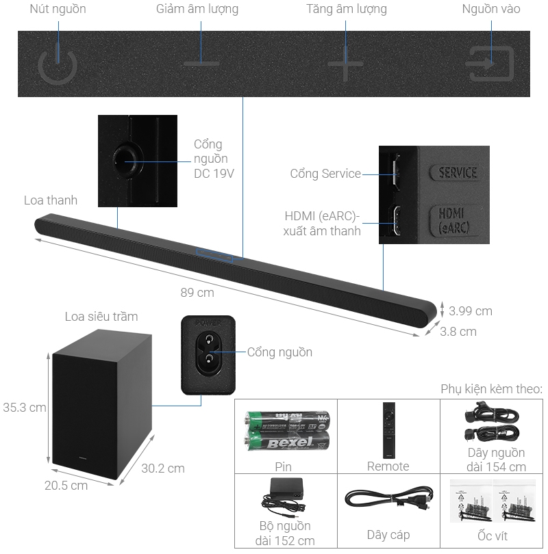 - Hệ thống loa 3.1 kênh, hoạt động với công suất 250W.